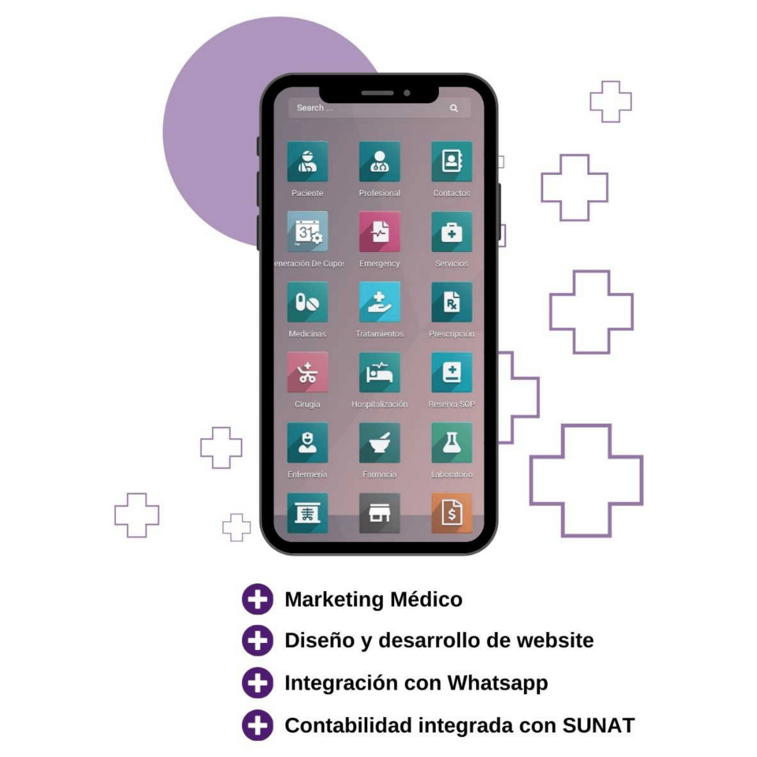 Con nuestra solución integral, cubrimos todo el ciclo de atención médica, desde la consulta ambulatoria hasta hospitalización, cirugía, emergencias, radiología, laboratorio y farmacia.